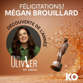 Félicitations à Mégan Brouillard : 2 statuettes remportées au 26e Gala Les Olivier dont celle pour Découverte de l'année