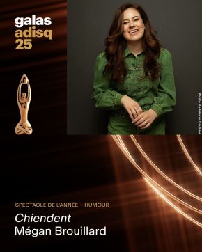 Félicitations à Mégan Brouillard qui a remporté hier le Félix spectacle d'humour de l'année au premier Gala de l'Adisq avec son spectacle Chiendent.